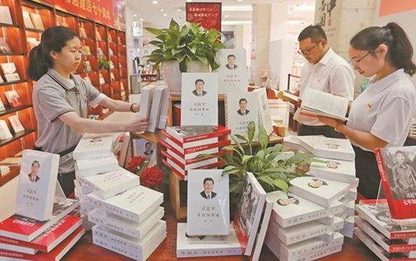 7月1日,在昆明新華書店南屏街昆明書城,慶“七一”優秀圖書專柜吸引了不少讀者。為慶祝建黨99周年,昆明書城設立專柜,重點推介最新出版發行的《習近平談治國理政》第三卷中英文版,同時還為廣大讀者組織了近百種黨建優秀讀物。(記者 楊崢 攝)