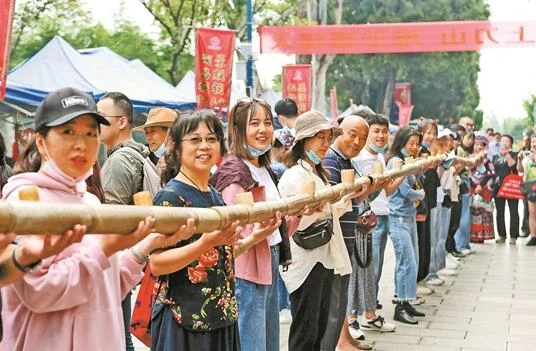 圖為游客參加千人連心酒體驗。(記者 雷桐蘇 劉子語)