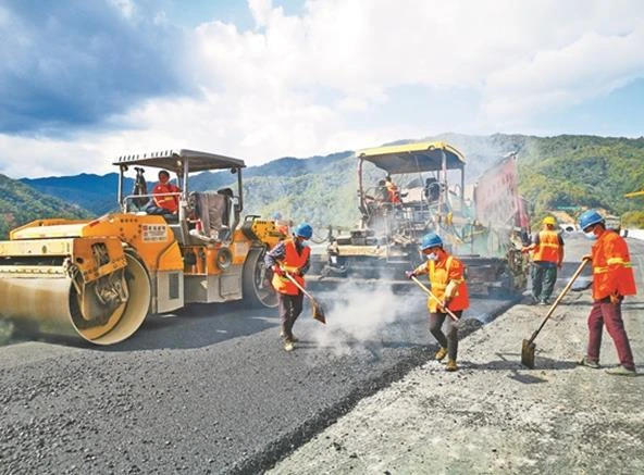 臨近歲末,云南交投集團緊盯“能通全通”高速公路建設目標,各在建項目進入全面沖刺階段。圖為騰沖至猴橋高速公路開始鋪筑路面。(通訊員 李文圣 攝)