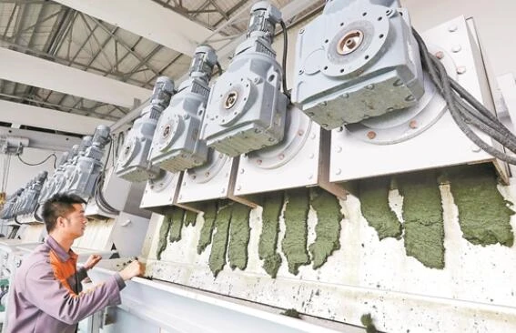 圖為在龍門藻水分離站,分離的藍藻經過脫水處理形成藻泥。(記者 楊崢)