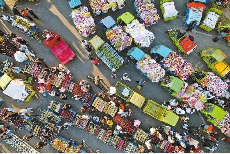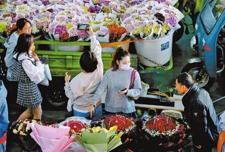 近期,昆明斗南花市進入交易高峰期,日均鮮切花交易量最高時達3000萬枝,其中日均拍賣數量在200萬枝左右,成交率在97%以上。同時,在全省旅游持續升溫的帶動下,節后“花卉經濟”保持產銷兩旺的良好勢頭,近期斗南花市日均游客量約2萬人次,花卉主題休閑游熱度不減。(記者 胡妤雅 攝)