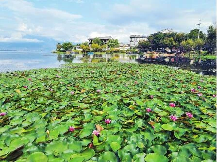 大理白族自治州扎實(shí)推進(jìn)洱海保護(hù)。截至2022年底,洱海水質(zhì)連續(xù)3年被評(píng)價(jià)為“優(yōu)”,27條主要入湖河流水質(zhì)優(yōu)良率達(dá)100%,湖體透明度提升至近20年來最高水平,流域范圍內(nèi)初步構(gòu)建起覆蓋全流域的生活污水收集處理體系。圖為大理市雙廊鎮(zhèn)洱海沿岸成片綻放的荷花。(記者 黃興能 攝)