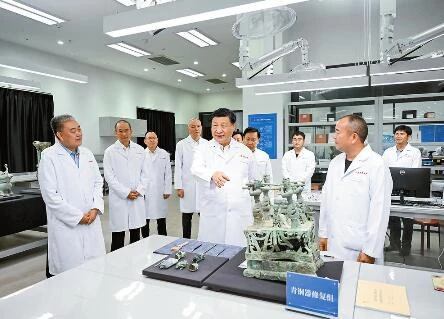 7月25日至27日,中共中央總書記、國家主席、中央軍委主席習近平在四川考察。這是26日下午,習近平在位于德陽市廣漢市的三星堆博物館文物保護與修復館,同現(xiàn)場工作人員親切交流。 新華社記者 謝環(huán)馳 攝
