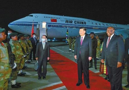 習近平抵達約翰內斯堡出席金磚國家領導人第十五次會晤并對南非進行國事訪問