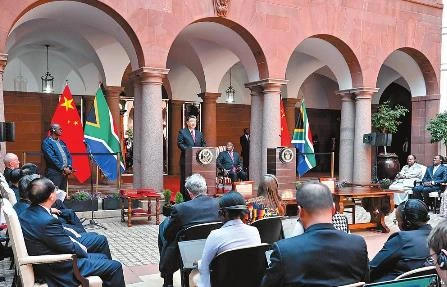 我們都同意,中南互利務(wù)實(shí)合作成果豐碩,雙方要做共同進(jìn)步的發(fā)展伙伴。加強(qiáng)發(fā)展戰(zhàn)略對(duì)接,以落實(shí)中非合作論壇“九項(xiàng)工程”和《中南十年合作戰(zhàn)略規(guī)劃》為主線,鞏固優(yōu)勢(shì)領(lǐng)域合作,培育合作新增長(zhǎng)點(diǎn)。中方愿進(jìn)口更多南非優(yōu)質(zhì)產(chǎn)品,繼續(xù)鼓勵(lì)中國(guó)企業(yè)赴南非投資興業(yè),不斷深化兩國(guó)電力、新能源、科技創(chuàng)新等領(lǐng)域合作。