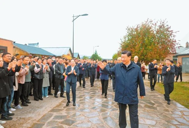 離開小院時,當地群眾在道路兩旁熱情歡送總書記。習近平親切地對大家說,北極村前景可期。希望廣大干部、群眾共同努力,把鄉村建設得更好、把生態保護得更好、讓人民生活得更好,共同奔向中國式現代化的美好未來。
