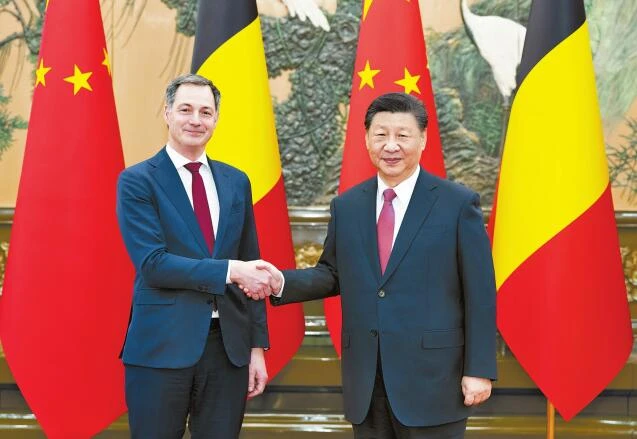習(xí)近平指出,中方高度重視中比關(guān)系發(fā)展。中比建交53年來(lái),各領(lǐng)域合作成果豐碩,惠及兩國(guó)人民。中比都是經(jīng)濟(jì)全球化的受益者,在抵制保護(hù)主義、維護(hù)自由貿(mào)易方面有共同利益。中方贊賞首相先生多次公開發(fā)聲反對(duì)“脫鉤斷鏈”,歡迎比利時(shí)企業(yè)來(lái)華投資興業(yè),愿為他們提供良好營(yíng)商環(huán)境,也希望比方為中國(guó)企業(yè)提供公正、透明、非歧視的營(yíng)商環(huán)境。雙方可以結(jié)合各自優(yōu)勢(shì),擴(kuò)大在交通物流、生物制藥等傳統(tǒng)領(lǐng)域合作,探討打造綠色發(fā)展、數(shù)字經(jīng)濟(jì)等合作新增長(zhǎng)點(diǎn)。雙方要鼓勵(lì)兩國(guó)政府部門、立法機(jī)構(gòu)、地方省市加強(qiáng)交往對(duì)話,擴(kuò)大雙向旅游和留學(xué)生交流,互辦大型文化活動(dòng),開展大熊貓保護(hù)研究,不斷增進(jìn)相互了解和民間友好,為中比關(guān)系注入新動(dòng)力、拓展新前景。中方愿同比方加強(qiáng)在聯(lián)合國(guó)等多邊框架內(nèi)溝通,就應(yīng)對(duì)氣候變化、保護(hù)生物多樣性等議題開展合作。