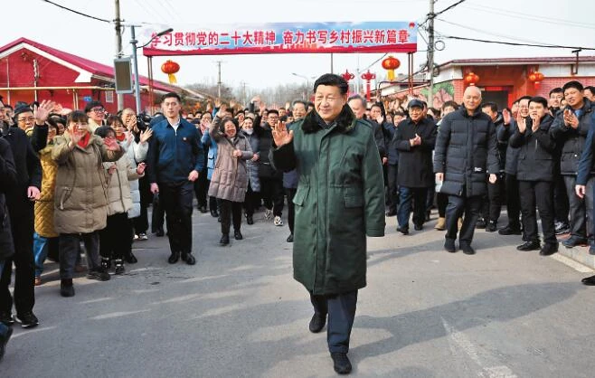 2月1日至2日,中共中央總書記、國家主席、中央軍委主席習近平來到天津,看望慰問基層干部群眾。這是1日上午,習近平在西青區辛口鎮第六埠村考察時,向村民們揮手致意。新華社記者 謝環馳 攝