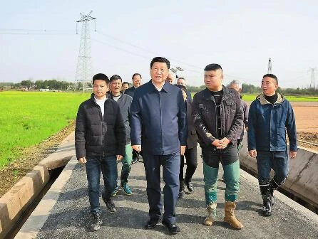 3月18日至21日,中共中央總書記、國家主席、中央軍委主席習近平在湖南考察。這是19日下午,習近平在常德市鼎城區謝家鋪鎮港中坪村,同種糧大戶、農技人員、基層干部親切交流。新華社記者 鞠鵬 攝