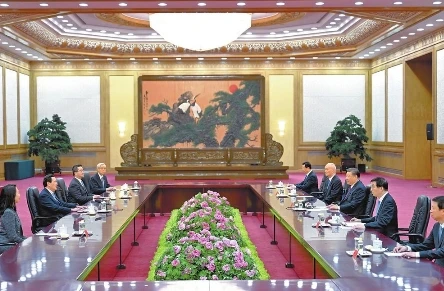 4月10日下午,中共中央總書記習近平在北京會見馬英九一行。 新華社記者 鞠鵬 謝環馳 攝