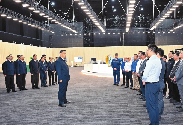 隨后,習(xí)近平來到合肥濱湖科學(xué)城,察看安徽省重大科技創(chuàng)新成果集中展示,聽取當(dāng)?shù)赝七M(jìn)科技體制機(jī)制創(chuàng)新、加快科技成果轉(zhuǎn)化等情況介紹,同現(xiàn)場科研人員和企業(yè)負(fù)責(zé)人親切交流。他在智能網(wǎng)聯(lián)汽車、新一代信息技術(shù)、新能源、人工智能、生命健康等高新科技產(chǎn)品前一一駐足,仔細(xì)察看,不時(shí)表達(dá)贊賞之意。習(xí)近平指出,推進(jìn)中國式現(xiàn)代化,科學(xué)技術(shù)要打頭陣,科技創(chuàng)新是必由之路。高新技術(shù)是討不來、要不來的,必須加快實(shí)現(xiàn)高水平科技自立自強(qiáng)。科研工作者是推進(jìn)中國式現(xiàn)代化的骨干,要拿出“人生能有幾回搏”的勁頭,放開手腳創(chuàng)新創(chuàng)造,為建設(shè)科技強(qiáng)國奉獻(xiàn)才智、寫下精彩篇章。
