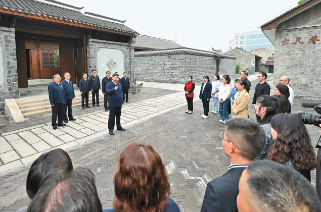 17日下午,習(xí)近平首先來到安慶桐城市考察。地處城中的六尺巷,因清代大學(xué)士張英與鄰居吳家互相退讓三尺地基而成,是中國鄰里和諧禮讓的典范。習(xí)近平來到這里,了解六尺巷歷史及其傳承,察看“桐城派”相關(guān)文物資料,聽取當(dāng)?shù)貍鞒泻霌P(yáng)中華優(yōu)秀傳統(tǒng)文化、加強(qiáng)精神文明建設(shè)等情況介紹。他強(qiáng)調(diào),要加強(qiáng)歷史文化保護(hù),堅(jiān)持創(chuàng)造性轉(zhuǎn)化、創(chuàng)新性發(fā)展,在發(fā)展社會主義先進(jìn)文化、弘揚(yáng)革命文化、傳承中華優(yōu)秀傳統(tǒng)文化上協(xié)同發(fā)力,打牢社會治理的文化根基。