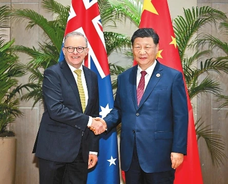 習近平指出,去年11月,我們在北京就事關中澳關系長遠發展的戰略性、全局性、方向性問題進行了深入溝通。一年多來,兩國各層級保持密切溝通交往,積極推進落實我們達成的重要共識,取得積極進展。中澳之間沒有根本利益沖突,只要雙方堅持相互尊重、平等相待、求同存異,中澳關系就一定能夠發展好。中方愿同澳方一道,推動建設更加成熟穩定、更加富有成果的中澳全面戰略伙伴關系,為地區和世界注入更多穩定性和確定性。