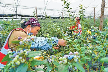 11月下旬,光筑農業集團位于硯山縣維摩彝族鄉的藍莓大棚里,青澀的果實次第泛起紅暈,繼而沉淀成深紫,披上銀白的薄紗。家住附近的村民楊紹梅指尖輕點,仔細摘下一顆顆藍莓。
