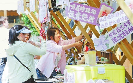 圖為游客在云紡蓄電池廠文化創意園品嘗美食、選購特色工藝品。