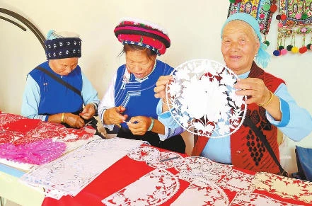 賓川非遺代表性傳承人展示剪紙作品。 通訊員 鄧永鳳 攝
