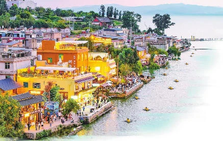而在滇池之濱的海晏村,又是另一番景象。憑借落日景觀,這里人流如織,餐飲店與咖啡館燈火通明、座無虛席,“落日經(jīng)濟(jì)”效益顯著。
