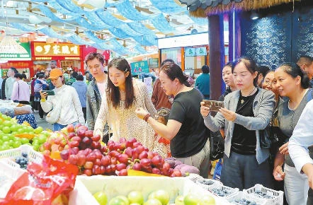 昆明市大觀篆新農(nóng)貿(mào)市場舉辦優(yōu)選產(chǎn)品展銷。 記者 楊崢 攝