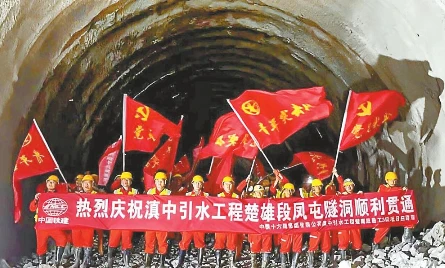 10月28日,隨著中鐵十六局承建的滇中引水項目鳳屯隧洞最后一段巖體被成功破除,滇中引水工程楚雄段實現全線貫通。