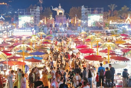 華燈初上,西雙版納告莊星光夜市流光溢彩、游人如織,休閑娛樂、文化體驗、游覽購物等多元業(yè)態(tài)吸引全國各地的游客紛至沓來。為迎接冬日旅游季,星光夜市陸續(xù)推出了傣泐公主年終巡回展演、水上歌舞展演、陸路巡游等活動,豐富游客冬季旅游體驗。(記者 黃興能 攝