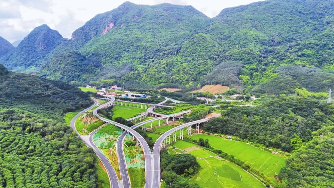 勐關高速公路位于西雙版納傣族自治州勐臘縣境內,起于G8511昆磨高速公路勐遠樞紐互通,通往國家級水運口岸關累港,接瀾滄江—湄公河國際水路大通道,概算總投資46.8754億元,主線全長29.81公里,橋隧比48.69%,計費里程25.164公里。勐關高速公路通車后,起點至關累口岸的時間由80分鐘縮短至20分鐘,顯著緩解了區域交通運輸壓力,提升了物流效率,改善了出行條件。
