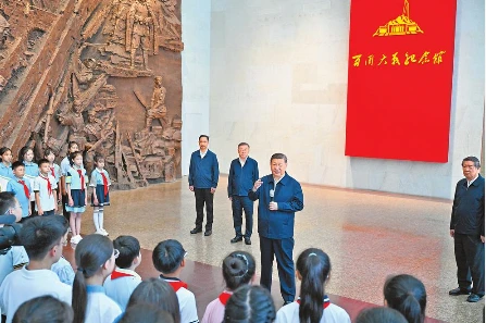 在紀(jì)念館大廳,習(xí)近平同前來參觀的青少年學(xué)生和紀(jì)念館工作人員親切交流。他說,88年前的今天發(fā)生的“七七事變”,是中華民族全面抗擊日本侵略者的起點(diǎn),前事不忘、后事之師,到這里來就是接受精神洗禮。廣大青少年生逢其時(shí),要賡續(xù)紅色血脈,樹立強(qiáng)國有我的遠(yuǎn)大志向,做堂堂正正、光榮自豪的中國人,勇?lián)褡鍙?fù)興的時(shí)代大任。