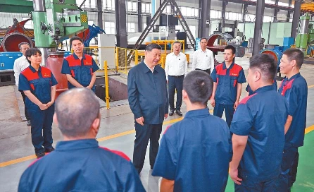 7月7日至8日,中共中央總書記、國家主席、中央軍委主席習(xí)近平在山西考察。這是7日下午,習(xí)近平在陽泉閥門股份有限公司考察時(shí),同企業(yè)員工親切交流。新華社記者 燕雁 攝