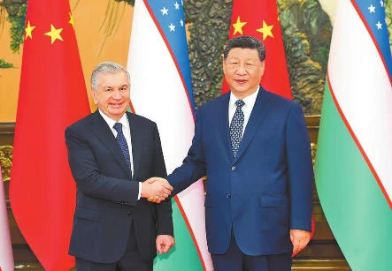 9月2日上午,國家主席習近平在北京人民大會堂會見來華出席2025年上海合作組織峰會和紀念中國人民抗日戰爭暨世界反法西斯戰爭勝利80周年活動的烏茲別克斯坦總統米爾濟約耶夫。