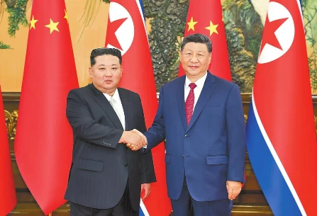 習近平指出,中朝是命運與共、守望相助的好鄰居、好朋友、好同志。中朝友誼源遠流長,兩國都是共產黨領導的社會主義國家,有著共同的理想信念和奮斗目標。金正恩總書記來華出席紀念中國人民抗日戰爭暨世界反法西斯戰爭勝利80周年活動,體現了朝方維護二戰勝利成果的堅定意志,也為中朝兩黨兩國進一步發展友好合作關系提供了重要契機。