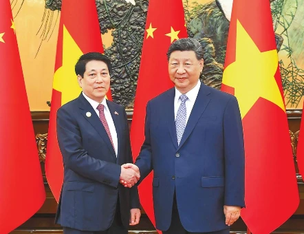習近平強調,中方支持越南走好符合本國國情的社會主義道路,開好越共十四大。雙方要本著同志加兄弟的精神,深化治黨治國經驗交流,辦好建交75周年暨“中越人文交流年”系列活動,給兩國人民帶來切實利益。面對單邊主義、叢林法則逆流,越來越多的國家認識到,妥協退讓沒有出路,聯合自強才有希望。我提出全球治理倡議,就是要推動全球治理體系朝著更加公正合理的方向發展。中方愿同越方一道,維護全球南方共同利益,為世界提供更多正能量。